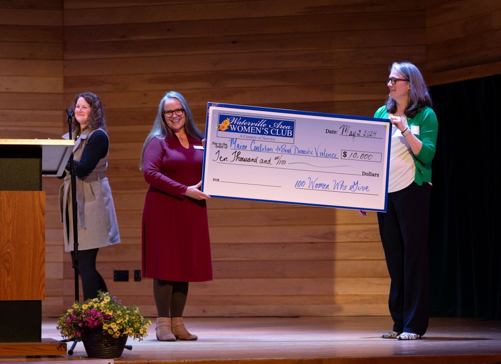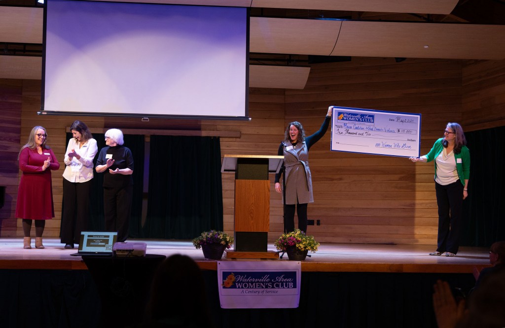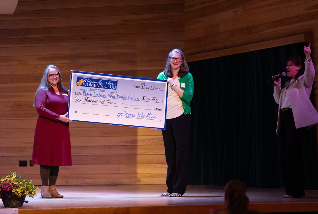 The Maine Coalition to End Domestic Violence recently was awarded $10,000 by 100 Women Who Give, a Waterville Area Women’s Club philanthropic event. Maine Coalition to End Domestic Violence advocates for the right of all people to live free from domestic abuse and all forms of violence. It was one of three Central Maine nonprofits recognized at the 100 Women Who Give event held May 2nd at Snow Pond Center for the Arts in Sidney, Maine.