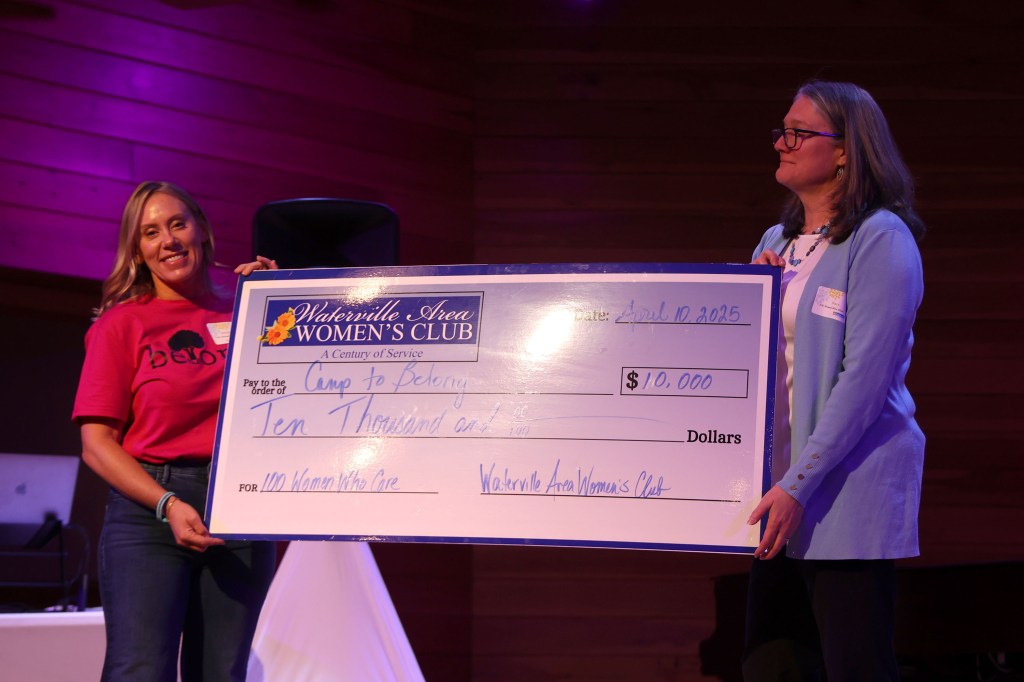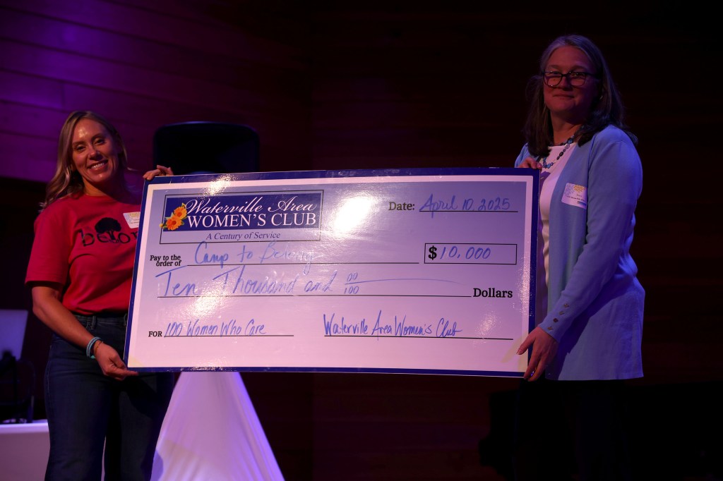 Camp to Belong Maine recently was awarded $10,000 by 100 Women Who Give, a Waterville Area Women’s Club philanthropic event. Camp to Belong reunites Maine siblings separated by foster care, adoption, or other out-of-home care through a week of summer camp and shared experiences and memories. It was one of three Central Maine nonprofits recognized at the 100 Women Who Give event held April 10th at Snow Pond Center for the Arts in Sidney, Maine.