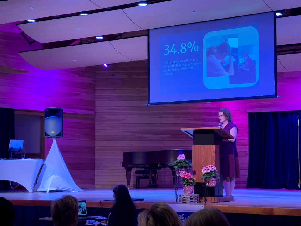 Aimee Morris, Program Coordinator for the South End Teen Center, spoke about its dedication to empowering youth through a safe, inclusive, and nurturing environment. Located at 5 Libby Court on the Waterville KVCAP Campus, the South End Teen Center is a satellite location of the Waterville Area Boys and Girls Club, proudly partnered with the Alfond Youth Center. It is open to all students in grades 6 through 12 from the Greater Waterville area.